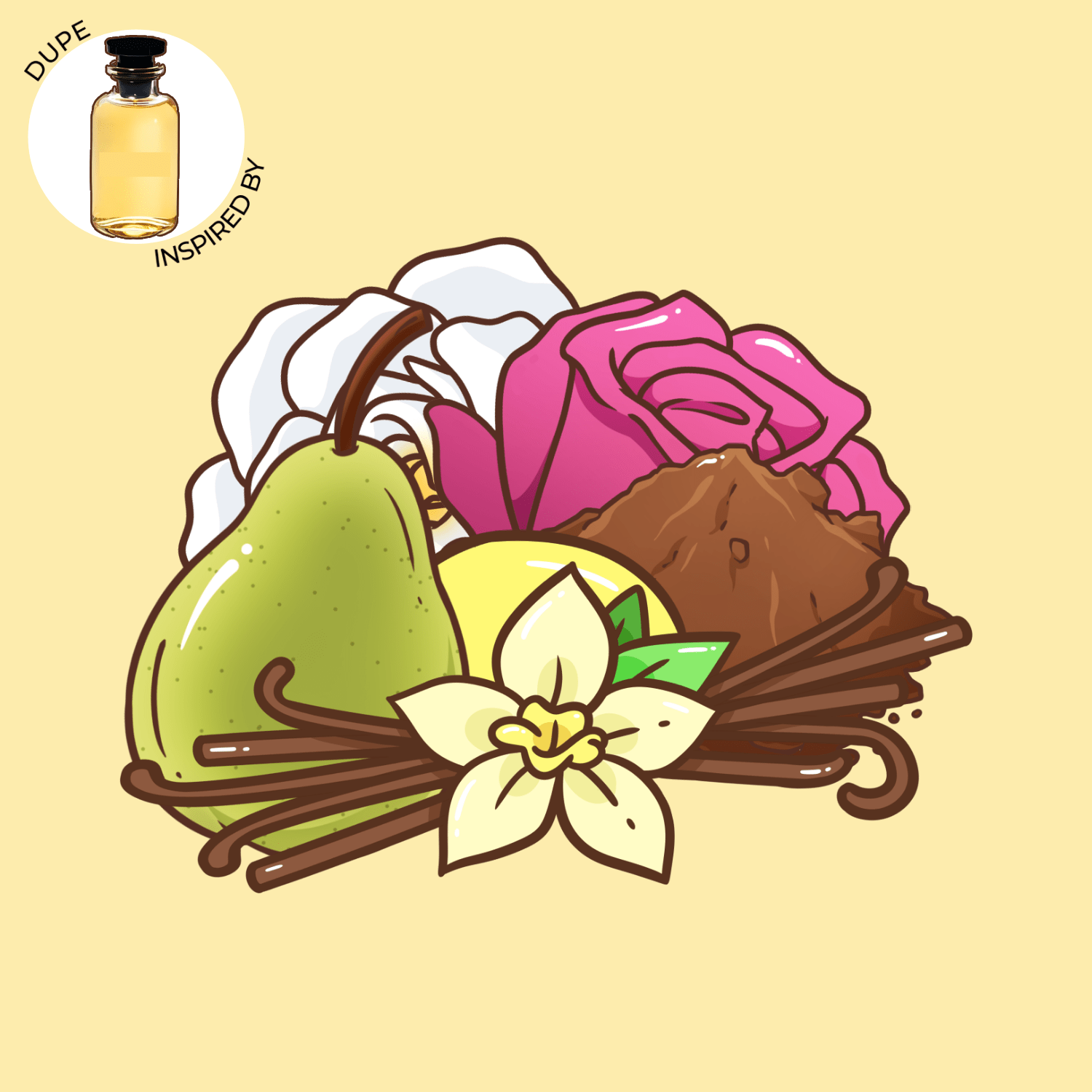 NOTES: Herbal notes, lemon, bergamot, magnolia, orange blossom, pear, pink rose, Tahitian vanilla, Madagascar vanilla, cocoa, ambrette